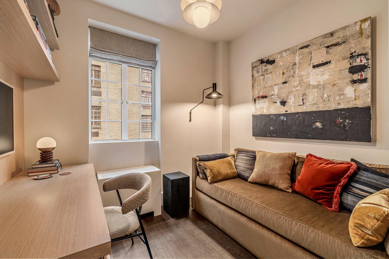 Pets are welcome and pied a terre ownership is permitted. A private storage unit is conveyed with the apartment. Up to 50% financing is permitted and there is a 3% flip tax paid by the buyer. Furniture and some art available for separate purchase. There is currently an assessment for city-mandated facade work of $1,307 per month, concluding in July 2025.