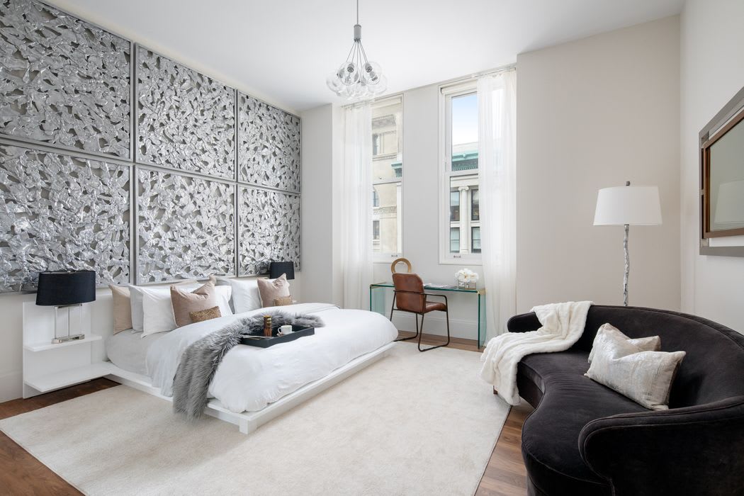 This high floor fabulously chic corner loft has been stylishly reimagined by designer, Cristy Farrelly, in collaboration with Michael Aram studios. The design blends timeless with modern, art with architecture and “New York” glamour with Parisian elegance creating a turn-key luxury experience. This 2-bedroom with bonus home office is located in Flatiron’s coveted, one and only, full-service luxury condo on Fifth Avenue; the magnificently restored, circa 1896, “Beaux Arts Beauty”,141 Fifth Avenue. The centerpiece of the loft is its circular living room with its curvy “bay” window seat with glorious Empire State Building and Flatiron’s historic “Ladies’ Mile” views. Spanning over 1,800SF with soaring ceilings, the great room is ideal for gracious entertaining. The foyer with its gallery-size walls for art leads to the open den. The glamourous powder room has custom marble vanity. The high-end chef’s kitchen boasts a full complement of appliances; hooded 6-burner Wolf range with pot filler, glass-front Sub-Zero refrigerator, Bosch dishwasher, integrated Miele coffee system and wine cooler. The custom cabinetry and white marble-island with counter dining, adds sophistication to the open plan. Fine elements, such as handsome millwork, tall doorways, 4-inch plank hardwood flooring exude warmth and character through-out. The two winged bedrooms provide for privacy. The master suite boasts a walk-in closet, en-suite 5-fixture bath with a rain shower, free-standing tub, heated floors and dual-sink vanity. The generously sized second bedroom has an en-suite bath. An in-unit washer-dryer completes this unique home.